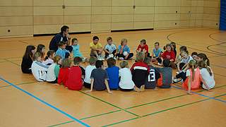 "Spielen und Bewegen mit Ball" richtet sich an alle Lehrkräfte der Grundschulen. Alle interessierten Lehrkräfte haben die Möglichkeit, die in Zusammenarbeit mit den 21 Fußball-Landesverbänden angebotenen Fort- und/oder Weiterbildungen zu besuchen.
