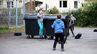 Sucht euch zu viert ein Hindernis, das ihr als ‚Netz’ verwenden könnt. Egal ob Mülltonnen, eine Parkbank oder eine kleine Mauer – ihr findet sicherlich etwas! Nun spielt ihr 2 gegen 2 Fußballtennis.