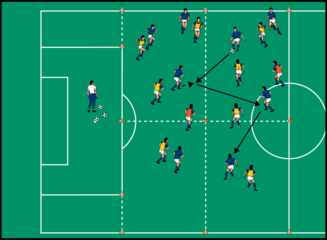 Raum-, Zeit- und Gegnerdruck bestimmen das moderne Spiel. Für die Ballbesitzer wird es immer schwerer, vor das gegnerische Tor zu kombinieren. Im Training gilt es, den Spielern hilfreiche Tipps zu vermitteln. In dieser Einheit steht die Ballzirkulation auf engem Raum im Mittelpunkt. Diese wird in mehreren Spielformen geschult. Die Spieler sollen lernen sich in solchen Zonen besonders aktiv freizulaufen, um Anspielstationen zu schaffen. Nur so lassen sich Drucksituationen auflösen und Torgelegenheiten herausspielen.