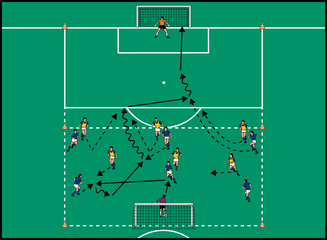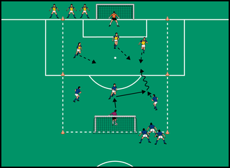Die gruppentaktische Abstimmung in der Abwehr lässt sich vor allem in kleinen Spielformen verfeinern. Hier lernen die Spieler, die gefährlichen Pass- und Dribbelwege zu erkennen und diese rechtzeitig zu schließen. Ein gegenseitiges Coachen der Spieler ermöglicht ein noch effektiveres Abwehrverhalten. Ziel ist es, in Ballnähe eine Überzahlsituation zu schaffen. Je nach Situation müssen die Spieler dabei entscheiden, wann nur gestellt, wann gedoppelt oder wann der Ball erobert werden kann. Gelingt die Balleroberung, so geht es sofort anschließend darum, blitzschnell umzuschalten und einen Gegenangriff einzuleiten.