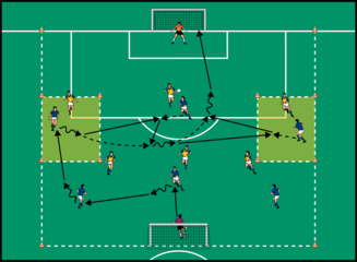Kurze Dribblings oder Passkombinationen an der Strafraumgrenze als Vorbereitung für einen Torschuss müssen abgestimmt, präzise und mit höchstem Tempo erfolgen. Ohne diese drei Attribute verlieren Angriffe ihren Überraschungseffekt für die gegnerische Abwehr, und die Erfolgswahrscheinlichkeit sinkt drastisch. Im Aufwärmen dieser Trainingseinheit stehen zunächst das Passen und Dribbeln im Mittelpunkt. Im Hauptteil werden diese Inhalte in eine komplexe Technikübung integriert. Je nach Könnensstand kann dabei die Komplexität durch Zusatzpässe oder ein 1 gegen 1 an der Strafraumlinie gesteigert werden.