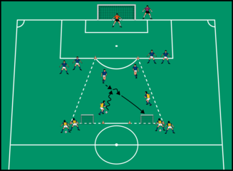 Das neue Jahr hat begonnen. Sowohl die Spieler als auch die Trainer haben die kurze Pause zur Erholung genutzt und starten mit neuer Motivation in die Vorbereitung zur Rückrunde. Solange die Witterung es ermöglicht, können taktische Inhalte wieder vermehrt ins Trainingsprogramm aufgenommen werden. In der spielfreien Zeit bestehen ausreichende Möglichkeiten, neue Dinge zu probieren bzw. einzustudieren oder an Bewährtem weiter zu feilen. In der aktuellen Einheit steht die gemeinsame Balleroberung mit sofortigem Umschalten auf Angriff auf dem Trainingsplan. Dabei soll schnell in die Spitze gespielt werden, um den Gegner in seiner Rückwärtsbewegung zu überrumpeln.