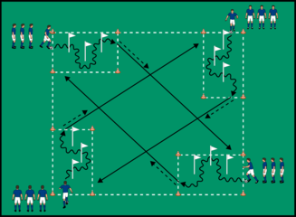 Das Kombinationsspiel im gegnerischen Drittel ist oft auf Grund technischer Schwächen bei der Ballan- und -mitnahme nur schwer durchführbar. Besonders dann, wenn die Passempfänger nicht in "offener Stellung" mit Blickkontakt zum gegnerischen Tor agieren, kommt es vermehrt zu unnötigen Rück- und Querpässen. Dabei müssten die Spieler möglichst schnell freie Mitspieler in der Tiefe erkennen, um diese aussichtsreich anspielen zu können. Schon im Aufwärmteil wird die direkte Ballan- und -mitnahme nach vorne geschult. Im Hauptteil wird sie in einer Übungs- und einer Spielform angewendet.