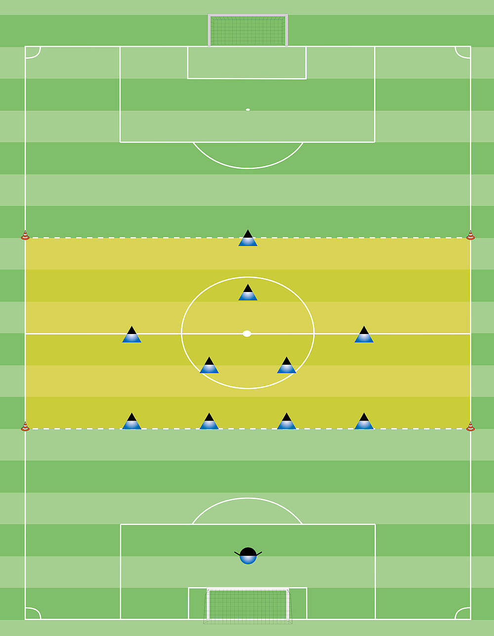 Damit dies erfolgreich gelingt, ist zunächst einmal ein 'Matchplan' vonnöten: In welchem Bereich des Feldes sollen die gegnerischen Ballbesitzer attackiert werden? Dies gilt es, genau zu überlegen. Schließlich muss zwischen den Strafräumen ein rund 70 x 70 Meter großes Feld abgedeckt werden. Um hier erfolgreich zu sein, muss das Team versuchen, den zur Verfügung stehenden Raum gezielt in der Tiefe zu halbieren und diesen kompakt zu besetzen.