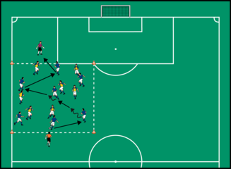 Der Spielaufbau mit einem Kombinationsspiel vom Torhüter über die beiden seitlich vom Strafraum stehenden Innenverteidiger ist eine Möglichkeit, einen früh angreifenden Gegner zu locken. Wichtig dabei sind die aufeinander abgestimmten Laufwege des zentralen Mittelfeldspielers und des Außenverteidigers. So stehen den Ballbesitzern verschiedene Möglichkeiten für den Spielaufbau zur Verfügung, die in dieser Trainingseinheit thematisiert und erarbeitet werden.