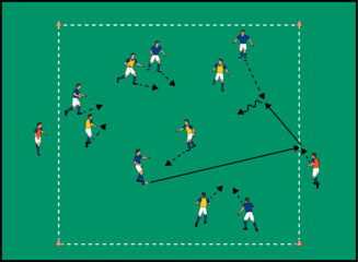 Ein guter Überraschungsmoment ist das A und O, wenn eine Mannschaft versucht, die gegnerischen Verteidigungsreihen zu überspielen und gefährlich vor das Tor zu gelangen. Je schneller es den Ballbesitzern also gelingt, in die Spitze zu kombinieren, desto schwerer wird es dem Gegner fallen, sich auf die Angriffe einzustellen. Langwieriges Ballgeschiebe birgt ergo kein hohes Gefahrenpotenzial! Entsprechend sind bereits die Verteidiger im Spielaufbau gefragt! Bereits der erste Pass sollte von ihnen nicht quer, sondern möglichst vertikal in die Tiefe erfolgen. Gerade die jetzige Vorbereitungszeit sollte genutzt werden, um die Spieler im taktischen Bereich voranzubringen. Das schnelle Spiel in die Tiefe ist hierfür ein sehr geeignetes Trainingsthema.