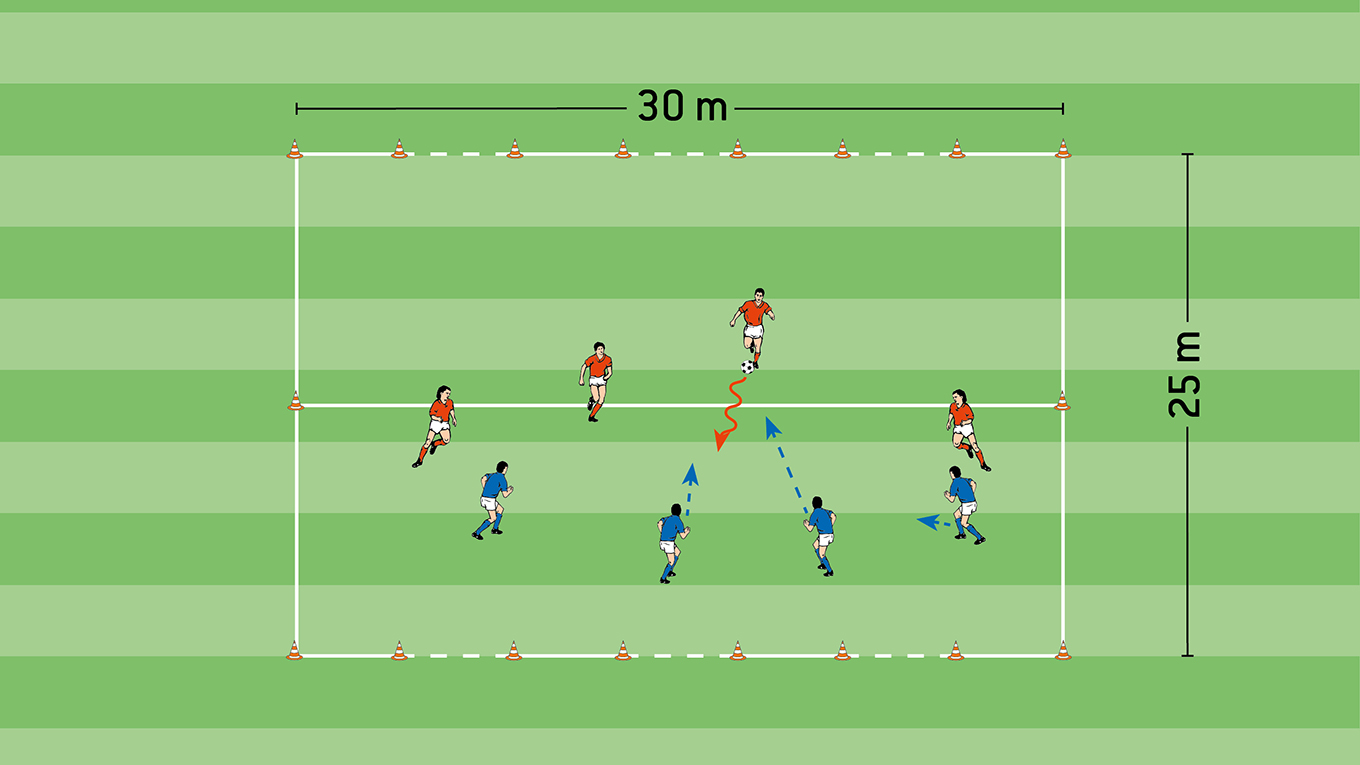 Mit den folgenden Kernspielen haben wir das Schulen der Abläufe in der Viererkette in sechs systematische Lernschritte unterteilt. Wie bereits erwähnt, gilt es, erst dann zum jeweils nächsten Schritt vorzurücken, wenn die Spieler die Inhalte des aktuellen verstanden haben und sicher anwenden können.