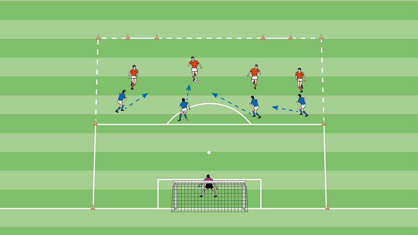Viererkette ist nicht gleich Viererkette. Je nach Philosophie kann dieses Spielsystem sehr unterschiedlich interpretiert werden. Entsprechend unterschiedlich fällt dann auch das Coaching im Training aus. Vor dem ersten Training sollte der Trainer genau im Kopf haben, wie die Viererkette der eigenen Mannschaft agieren soll. Soll der gegnerische Ballbesitzer nach innen oder nach außen gedrängt werden? Drängt man nach außen ab, besteht unmittelbar eine deutlich geringere Gefahr für das eigene Tor. Da sich jedoch mehr Mitspieler im Zentrum des Feldes befinden, vergrößert sich hier die Wahrscheinlichkeit für einen Ballgewinn. Eine differenzierte Antwort auf diese Frage sagt also auch einiges über das Vertrauen in die eigenen Stärken aus.