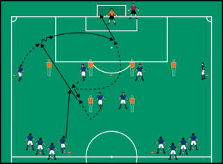 Das Spiel mit zwei Stürmern bietet Vorteile. Diese Trainingseinheit lehrt einen Spielzug, den die Angreifer aktiv mit einleiten und im Idealfall später im Strafraum mit Torerfolg abschließen. Im Aufwärmen wird das Thema der Einheit mit Hilfe von themenbezogenen Passformen vorbereitet. In der abschließenden Spielform müssen die Spieler das Erlernte dann im 8 gegen 6 unter Beweis stellen.
