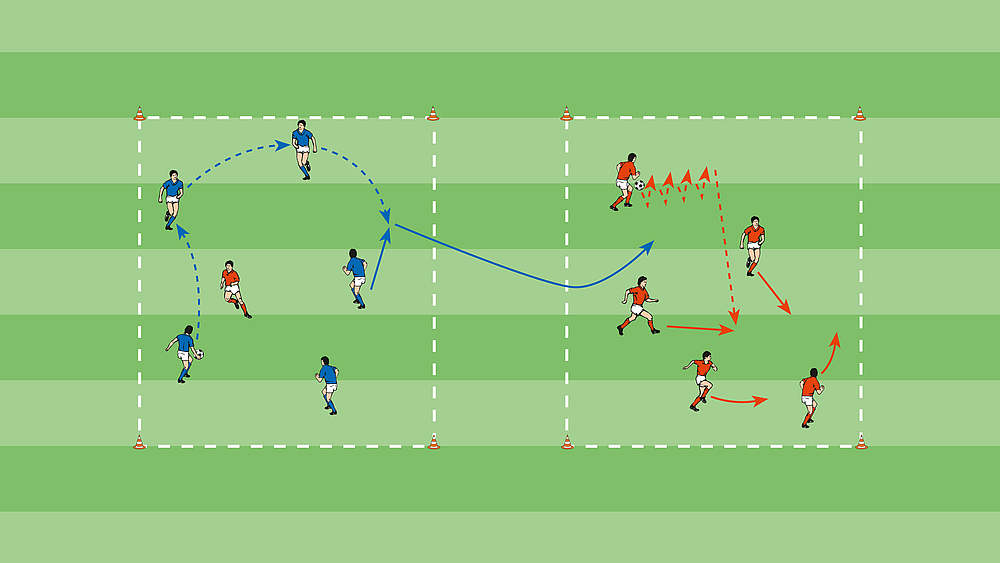 1 Spieler der Läufermannschaft postiert sich ohne Ball im gegnerischen Feld.