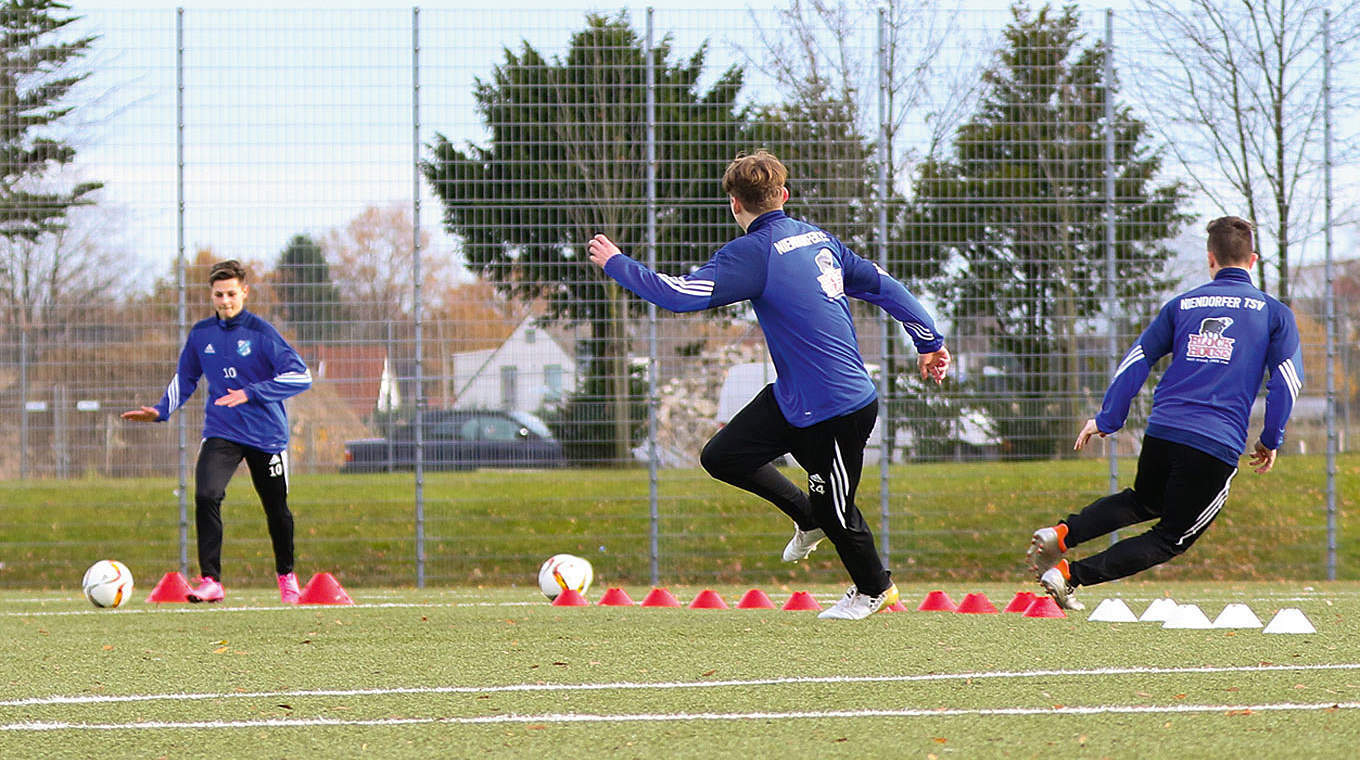 Wie Nieber das Koordinationstraining in den Einheiten mit fußballspezifischen Aufgabenstellungen verknüpft, zeigen die unten dargestellten Videos.