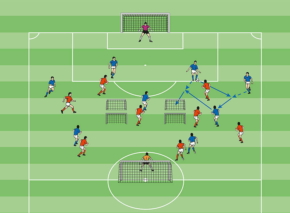 Dabei kommt es Trainer Hyballa jedoch stets darauf an, das Ballhalten immer zweckgemäß zu trainieren. Das heißt, bei geeigneter Gelegenheit dürfen die Spieler alternativ auch schnell zum Abschluss kommen. Geeignete Mittel, um auch in schwierigen Situationen den Ball zu halten und seinen Besitz zu sichern sind harte präzise Pässe, das Bilden von Dreiecken, ein schnelles Andribbeln sowie Spielverlagerungen.