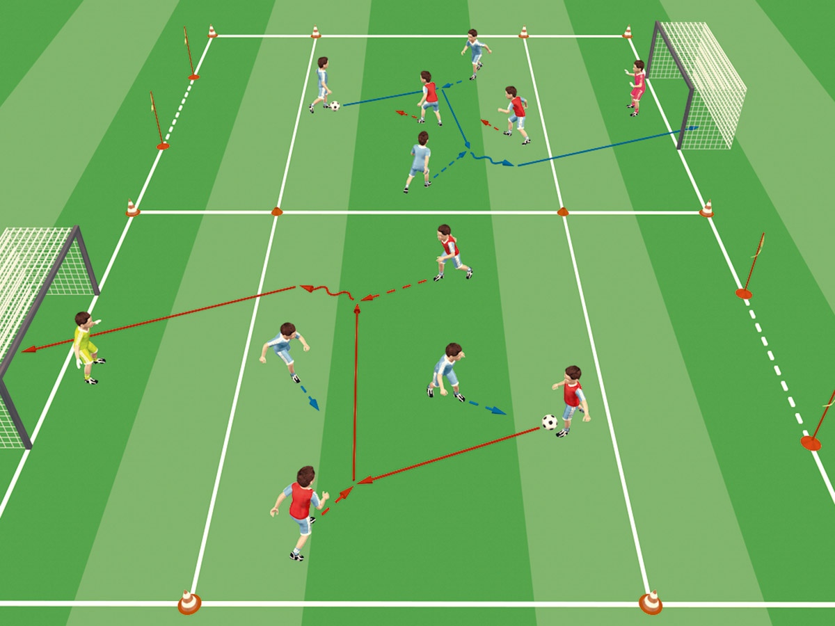 Um jetzt schon die Vorfreude auf die Zeit nach der Sommerpause zu wecken, sollten die Kinder zum Abschluss nochmals die schönsten Facetten des Spiels erleben dürfen. Hierfür eignen sich freie Spiele in kleinen und größeren Gruppen optimal, bei denen das Toreschießen im Mittelpunkt steht. Nachstehend präsentieren wir verschiedene Optionen, die eine gute Trainingsatmosphäre garantieren.