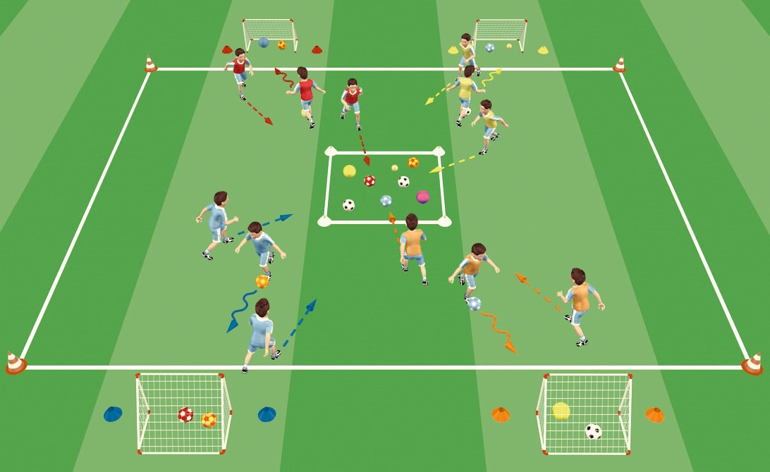 • Aufgabe: „Bringe so viele Bälle wie möglich in die Tore! Du kannst aber immer nur einen einsammeln. Wer schafft die meisten Bälle?“