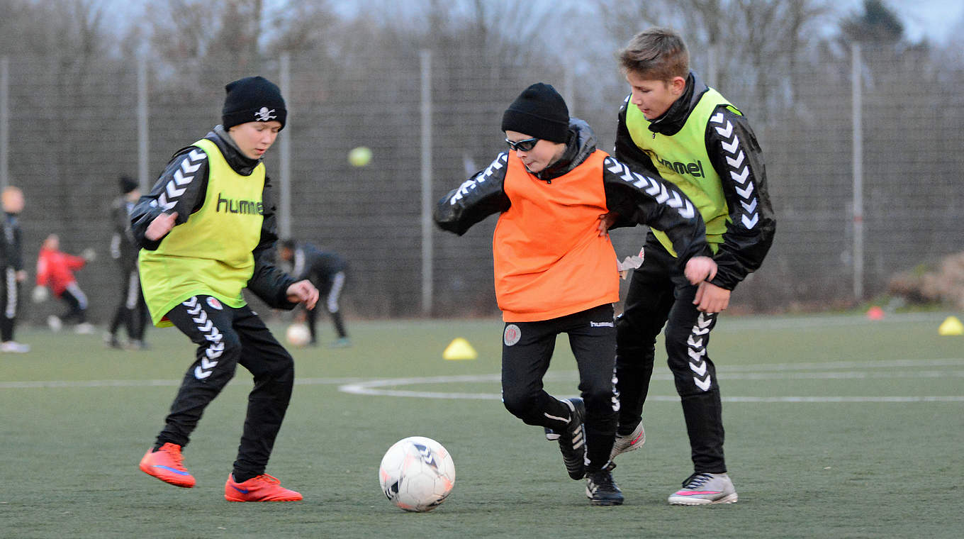 Die Handlungsschnelligkeit kann in vielen verschiedenen Trainingsformen geschult werden. Im Aufwärmteil der aktuellen Einheit sind die Spieler kognitiv gefordert, indem sie sich während des Dribblings einen Tennisball zuwerfen. Erweitert wird durch einen Wettkampf der Zeitdruck erhöht, sodass Entscheidungen schnell getroffen werden und die Ausführung weiterhin technisch sauber durchzuführen ist.