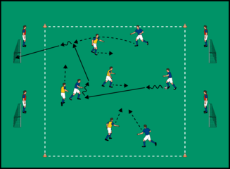 Die Grundlage des Zusammenspiels ist das saubere, präzise und scharfe Passspiel. In der aktuellen Trainingseinheit wird diese elementare Voraussetzung für das Herausspielen von Torchancen geschult. Um das Training so effizient und effektiv wie möglich zu gestalten und jedem Kind eine Vielzahl von Wiederholungen zum Schwerpunkt zu ermöglichen, sind wenig Leerlaufzeiten notwendig. Unnötige Pausen werden durch einen möglichst gleichbleibenden Aufbau verhindert. Bei den D-Junioren im Passspiel insbesondere auf ein fixiertes Fußgelenk, das Treffen des Balles im Zentrum der Fußbreitseite, den Blick in Passrichtung und das Nachgehen nach dem Abspiel achten.