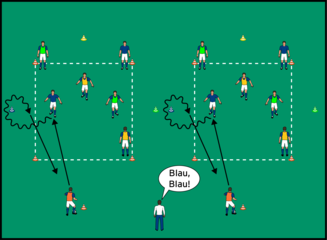 Geht es zur zweiten Saisonhälfte auch für die letzten Mannschaften wieder nach draußen auf den Rasen, so ist es besonders wichtig, diese Spieler*innen langsam wieder an die alten Trainingsbedingungen zu gewöhnen. Deshalb achten Sie darauf, dass das Aufwärmen ausreichend und intensiv durchgeführt wird, um Verletzungen zu vermeiden. In dieser Trainingseinheit steht die gezielte Ballan- und -mitnahme unter Gegnerdruck auf dem Programm. Diese wird in verschiedenen Spielformen mit Über-/Unterzahl geschult.