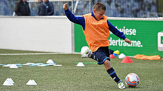 Durch hohe Wiederholungszahlen verbessern die F-Junioren ihre Torschuss-Qualitäten und messen sich miteinander in Wettkämpfen.