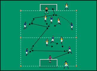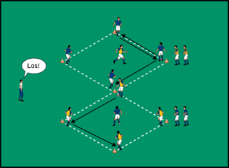 Im Taktiktraining mit D-Junioren steht die Individualtaktik im Mittelpunkt. Gleichzeitig sollen in der Altersklasse der Zwölf- und 13-jährigen aber auch die ersten gruppentaktischen Elemente mit in den Trainingsplan aufgenommen werden. In dieser Einheit geht es um den Spielaufbau aus der Defensive. Die Eröffnung erfolgt über den Torhüter. Der kurze Pass auf den nahen Mitspieler ist risikoreich, fördert aber auch das Vertrauen der Spieler in das eigene Kombinationsspiel. Wesentlich für einen funktionierenden Spielaufbau sind ein präzises Passspiel und eine effektive Ballverarbeitung des Torhüters sowie der eröffnenden Abwehr- und Mittelfeldspieler.